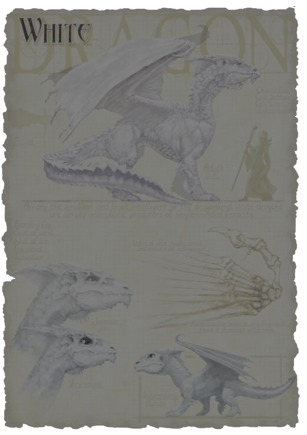 Although they are not pillars of intellect, white dragons have good memories, especially for events they have witnessed or experienced directly. They remember any slight or defeat and have been known to conduct malicious vendettas against beings or groups that have offended them.